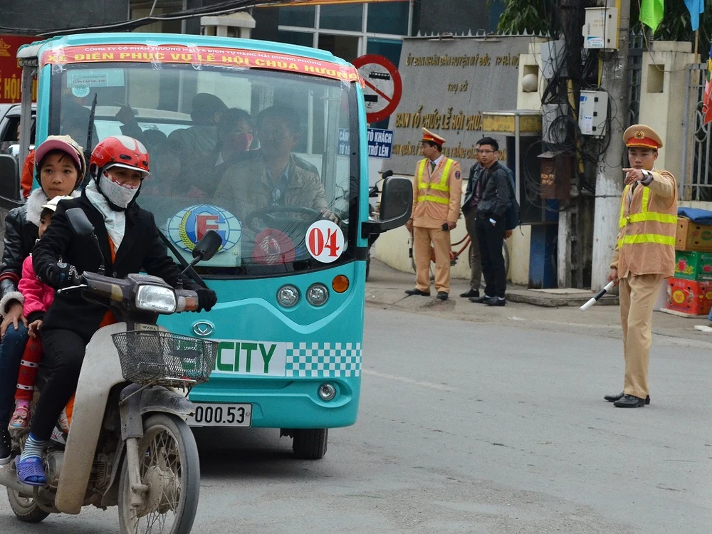 Để bảo đảm trật tự ATGT, phục vụ du khách tham gia lễ hội chùa Hương (Mỹ Đức, Hà Nội), CSGT Hà Nội đã tăng cường lực lượng, phối hợp với các đơn vị liên quan, bố trí cán bộ tại nhiều điểm và nút giao thông.