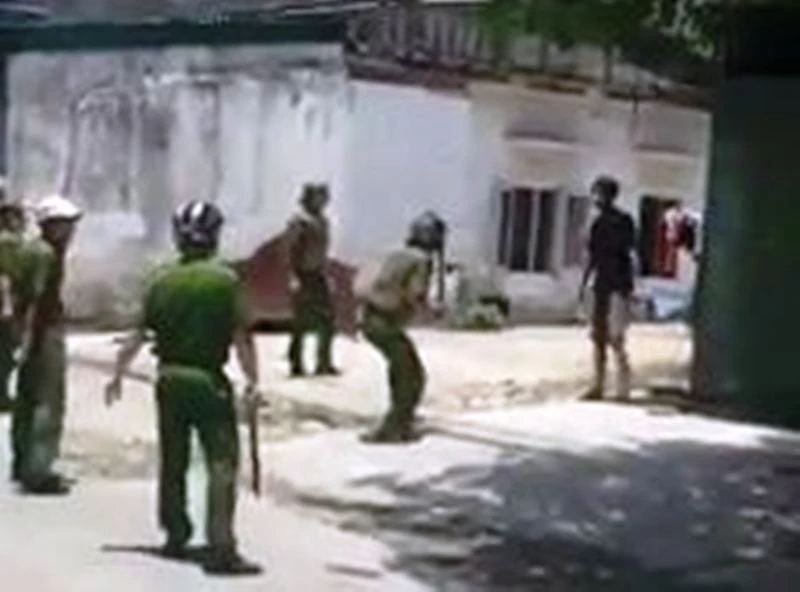 Cảnh sát khống chế Thế "ngáo đá". Nguồn: Đinh Bạt Thiết.