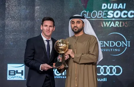 Messi trong buổi lễ nhận giải Global Soccer Awards tại Dubai hồi tháng 12 năm ngoái.