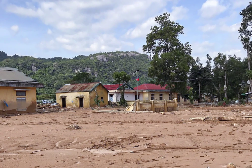 Bùn đất dày đặc trong trường Tiểu học và Trung học cơ sở Hướng Việt.