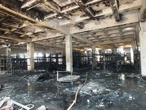 Những kiện hàng, thành phẩm của công ty cháy rụi thành than hư hại gây thiệt hại nghiêm trọng.