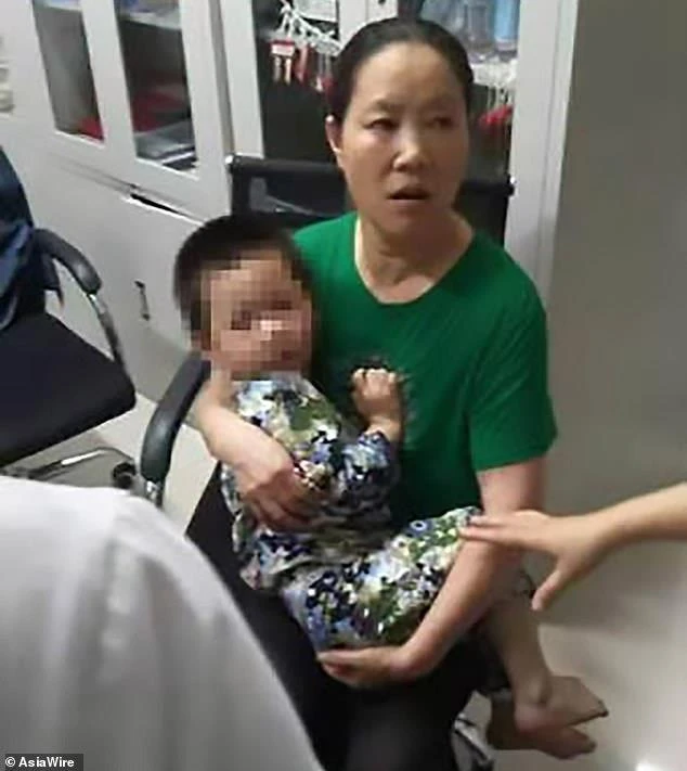 Rất may mắn, cậu bé ba tuổi đã rơi xuống trúng vào cái chăn phía dưới nên không ảnh hưởng đến tính mạng. Ảnh: Daily Mail