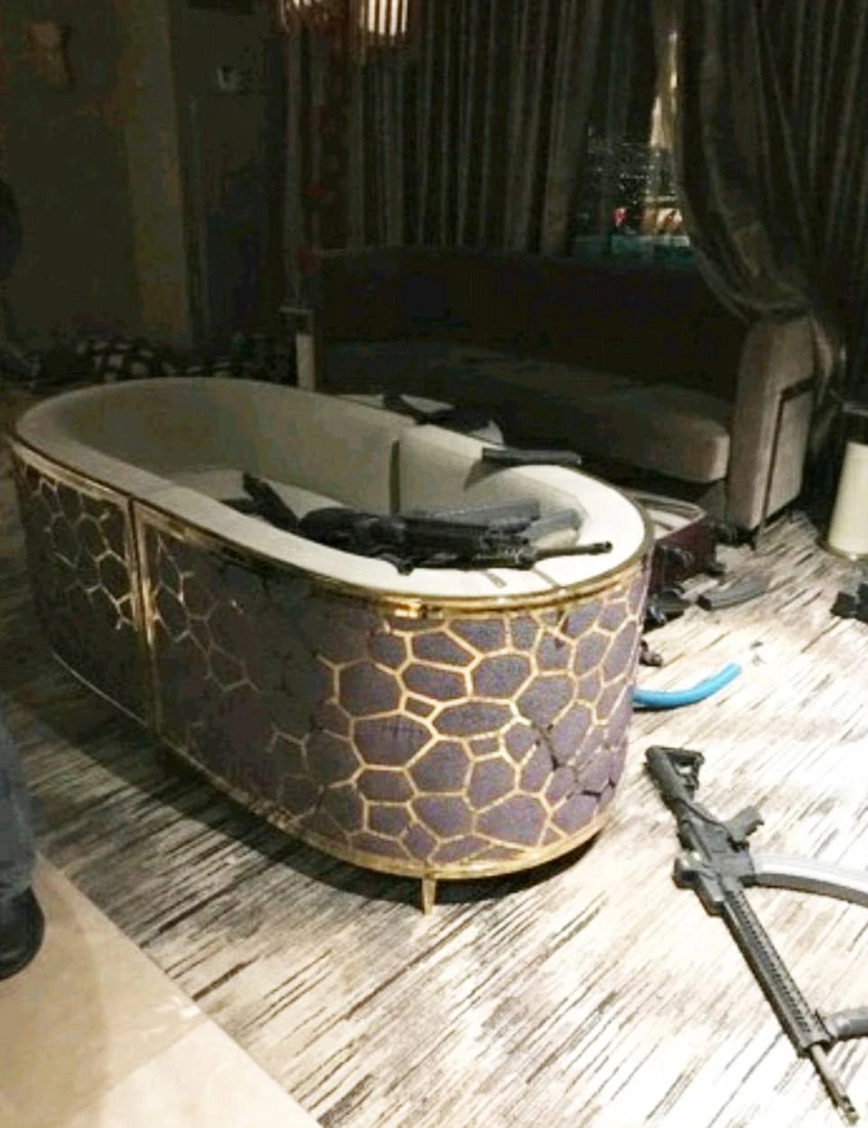 Những bức ảnh được cho là đã bị rò rỉ hôm 3-10 cho thấy thi thể Stephen Paddock (64 tuổi) nằm sõng soài trên sàn nhà của căn phòng khách sạn mà ông ta đã thuê để làm căn cứ xả súng.