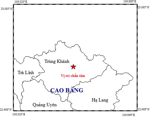 TS Nguyễn Xuân Anh, Giám đốc Trung tâm Báo tin động đất và cảnh báo sóng thần - Viện Vật lý địa cầu, xác nhận vào 6 giờ 49 phút sáng nay, 28-11, đã xảy ra một trận động đất có độ lớn 4.7 độ Richter tại tọa độ (22.844 độ vĩ Bắc, 106.581 độ kinh Đông), độ sâu chấn tiêu khoảng 10 km. Động đất xảy ra tại khu vực huyện Trùng Khánh, tỉnh Cao Bằng.