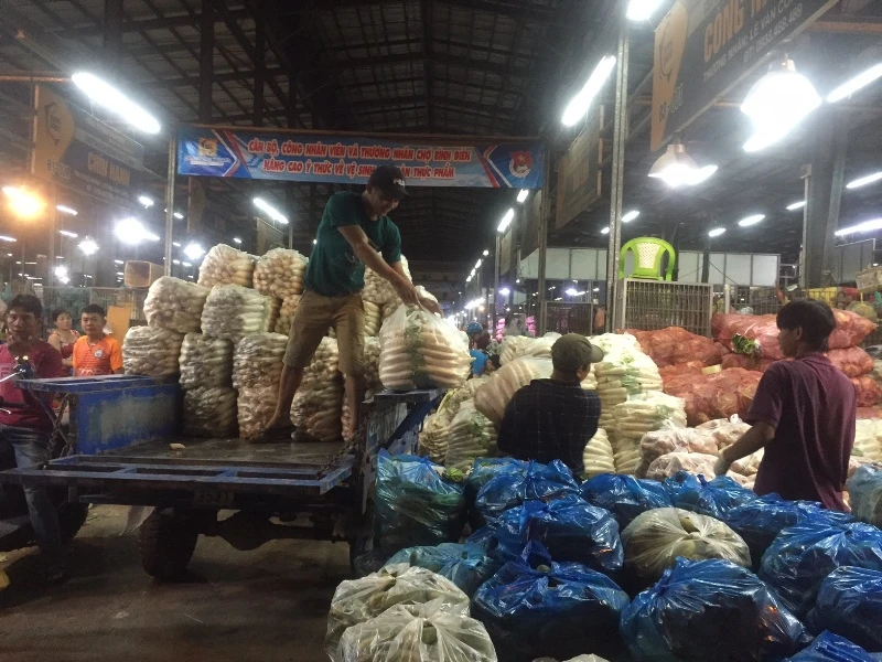 Tại chợ đầu mối Hóc Môn tổng lượng hàng về chợ đạt 3.145 tấn, tăng 56,4% so ngày thường, trong đó thịt heo về chợ đạt 679 tấn/đêm, tăng 80,6% so ngày thường.…Chợ đầu mối Thủ Đức lượng hàng về chợ đạt 5.900 tấn/đêm, tăng 61,4% so với ngày thường, trong đó rau củ dồi dào, đạt 2.571 tấn, tăng 45,2% so ngày thường…