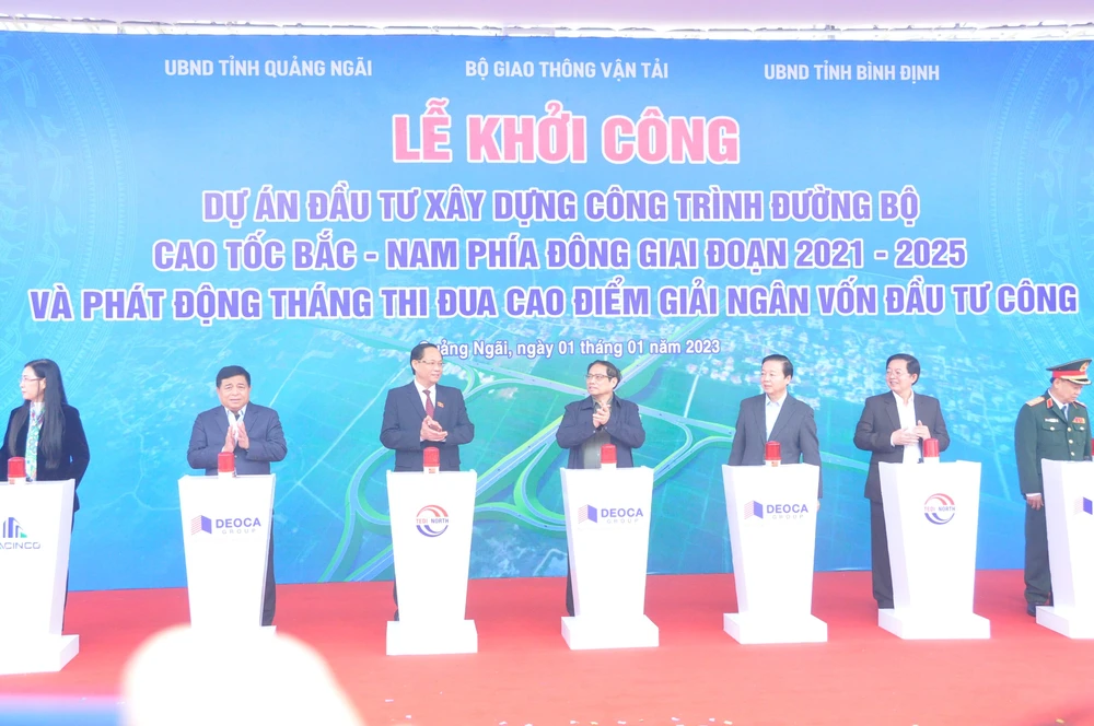 Đúng 12 giờ trưa ngày 1-1-2023, tại điểm cầu trung tâm tỉnh Quảng Ngãi, Thủ tướng Chính Phủ Phạm Minh Chính đã chính thức bấm nút khởi công Dự án Cao tốc Bắc – Nam phía Đông giai đoạn 2 (2021-2025).