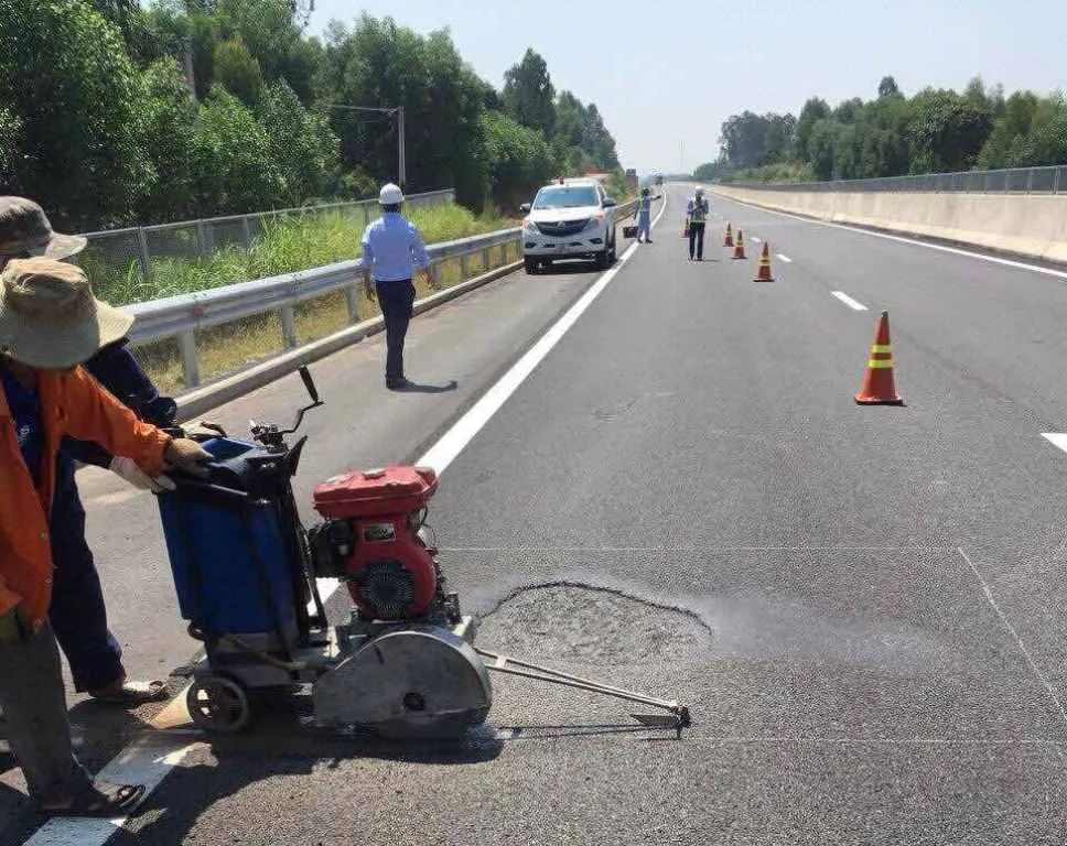 Sửa chữa ổ gà trên cao tốc Đà Nẵng-Quảng Ngãi. Ảnh: BQL