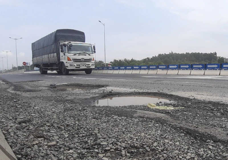 Đây không phải lần đầu cao tốc Đà Nẵng - Quảng Ngãi lở loét mặt đường. Ảnh: TẤN VIỆT