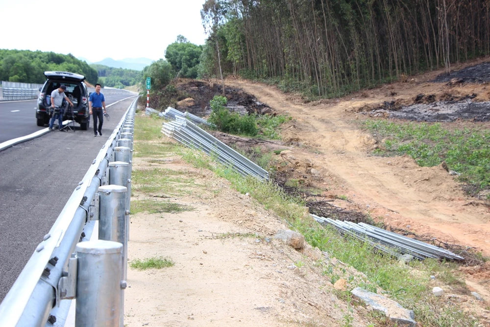 Hệ thống hàng rào bảo vệ hành lang an toàn giao thông toàn tuyến đã hoàn thành 85 km, còn 50 km chưa hoàn thành do vướng mắc trong giải phóng mặt bằng. Lãnh đạo VEC cam kết đến ngày 30-10 sẽ hoàn thành. Ảnh: TẤN VIỆT
