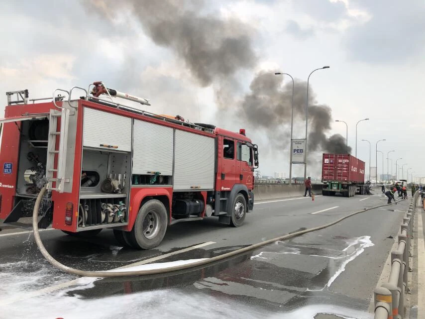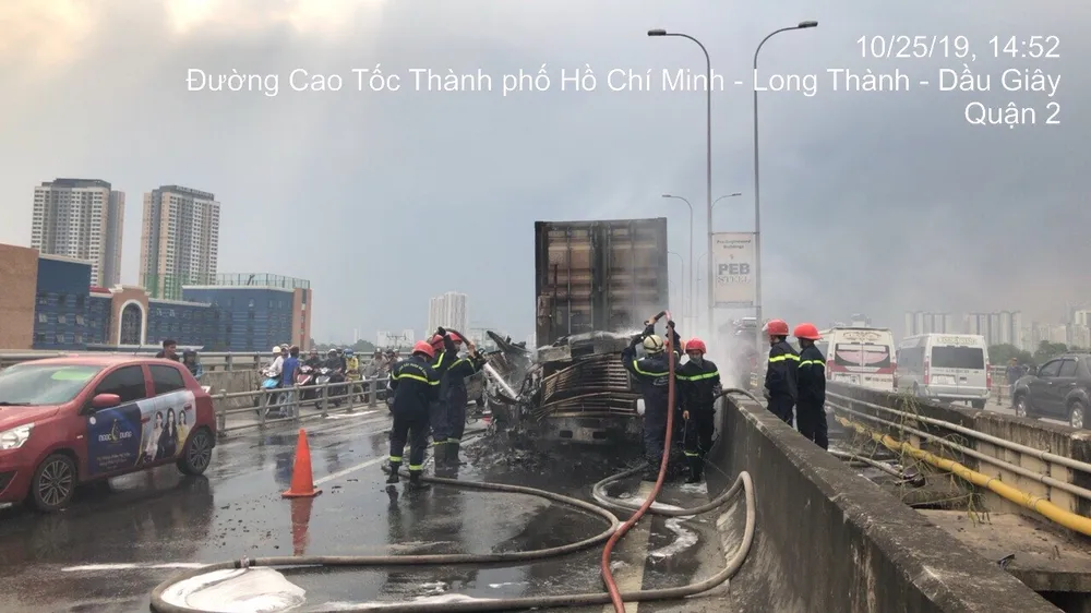 Trao đổi với PV, đại diện Trung tâm Quản lý đường hầm sông Sài Gòn cho biết khoảng 15 giờ ngày 25-10, tại đường dẫn cao tốc TP.HCM - Long Thành - Dầu Giây đã xảy ra sự cố cháy container. Ngay sau đó, sự cố này được xử lý, tuy nhiên cũng bị ảnh hưởng đến tình hình giao thông.