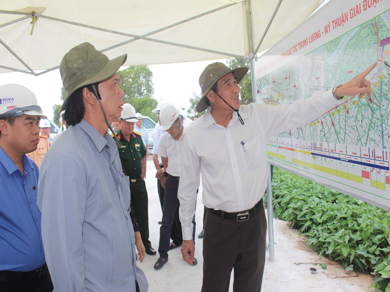 Lãnh đạo UBND tỉnh Tiền Giang kiểm tra thi công tuyến cao tốc