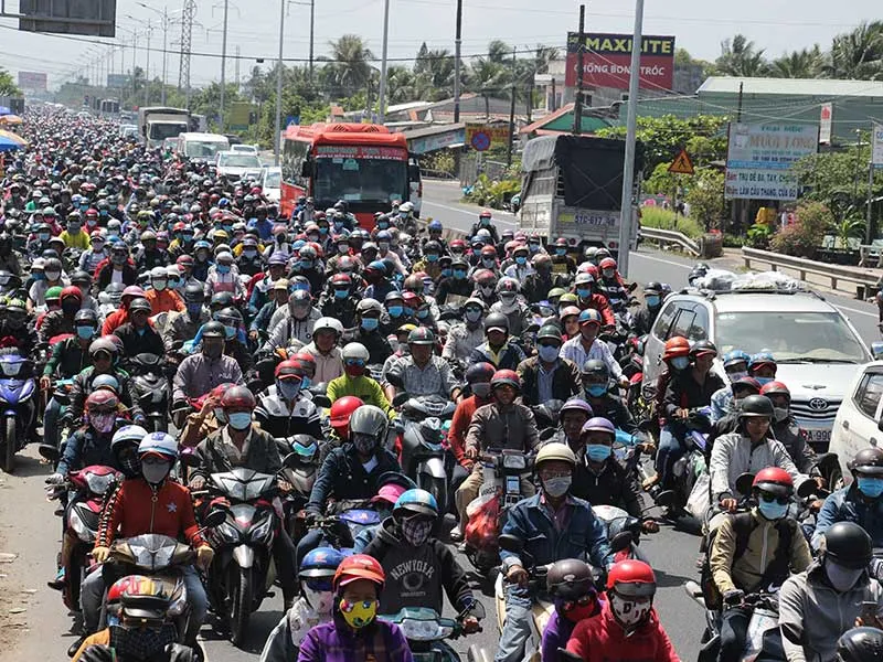 QL1 đoạn qua Tiền Giang kẹt cứng vào mùng 6 Tết, trong khi cao tốc Trung Lương - Mỹ Thuận giảm tải cho đường này vẫn đang gặp khó. Ảnh: HN
