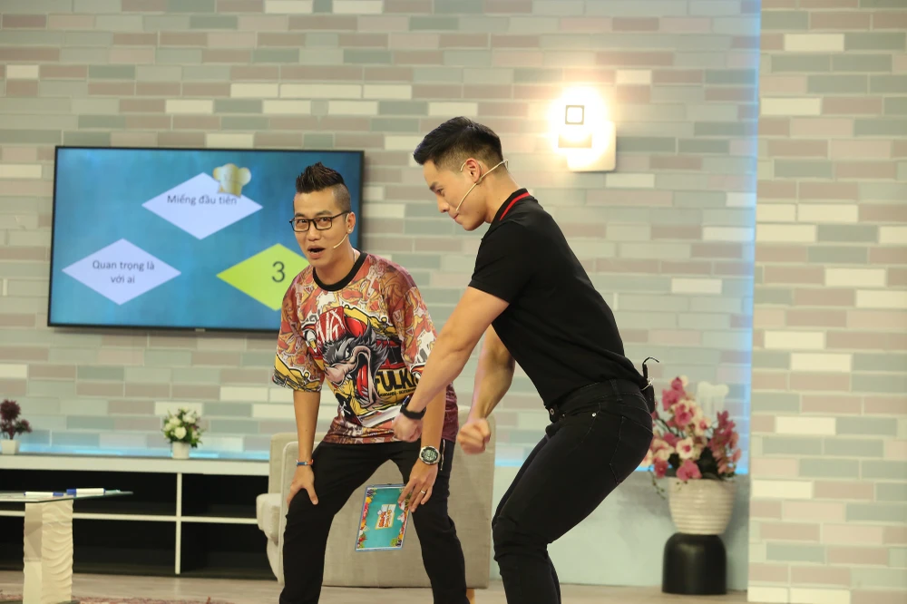 Vẫn thấy nam khách mời ăn liên tục không ngừng đũa, nam MC tiếp tục lên tiếng phàn nàn: “Bình thường khách mời ăn có hai miếng là ngừng đũa, riêng em là ăn nhiệt tình vậy luôn đó Tài”. Không quan tâm, Cao Xuân Tài vẫn cho thấy sức ăn rất khỏe của mình.