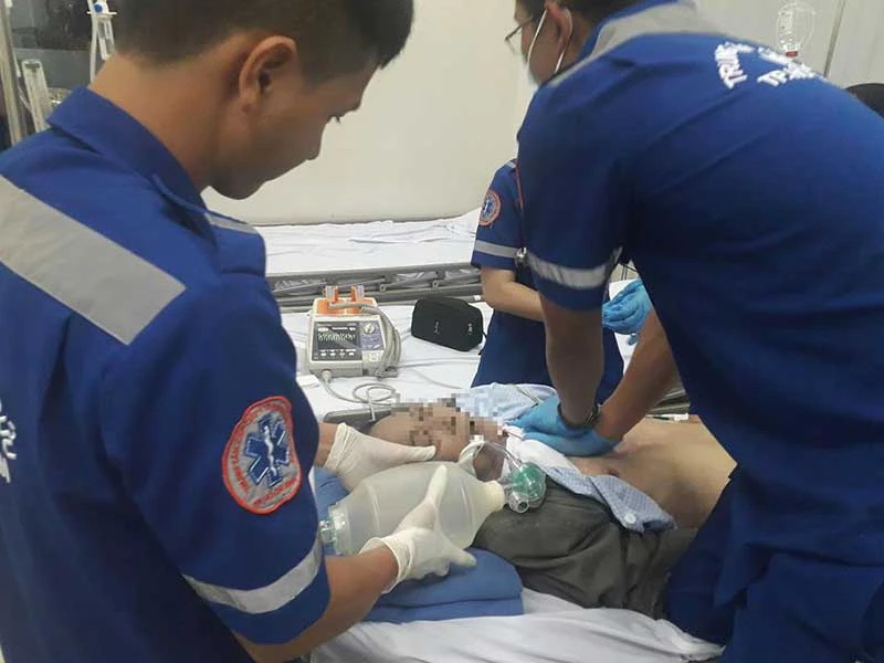 Tới nơi, nhân viên cấp cứu thấy ông T. đang trong tình trạng thở chậm, mắt nhắm nghiền, mạch hầu như không bắt được. Người nhà cho biết ông T. có tiền sử bệnh tim.