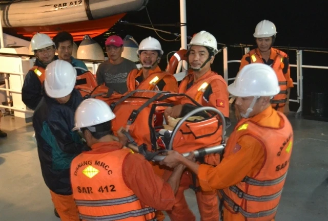 Danang MRCC cử tàu SAR 412 cùng hai bác sĩ ra khơi cứu nạn ngư dân. Sau khi tiếp cận tàu cá, bệnh nhân được chuyển sang tàu SAR 412 để các bác sĩ sơ cấp cứu. Tình trạng bệnh nhân bị tai biến, hôn mê sâu, rất nguy kịch nên phải khẩn trương đưa vào bờ để điều trị.