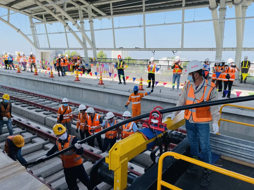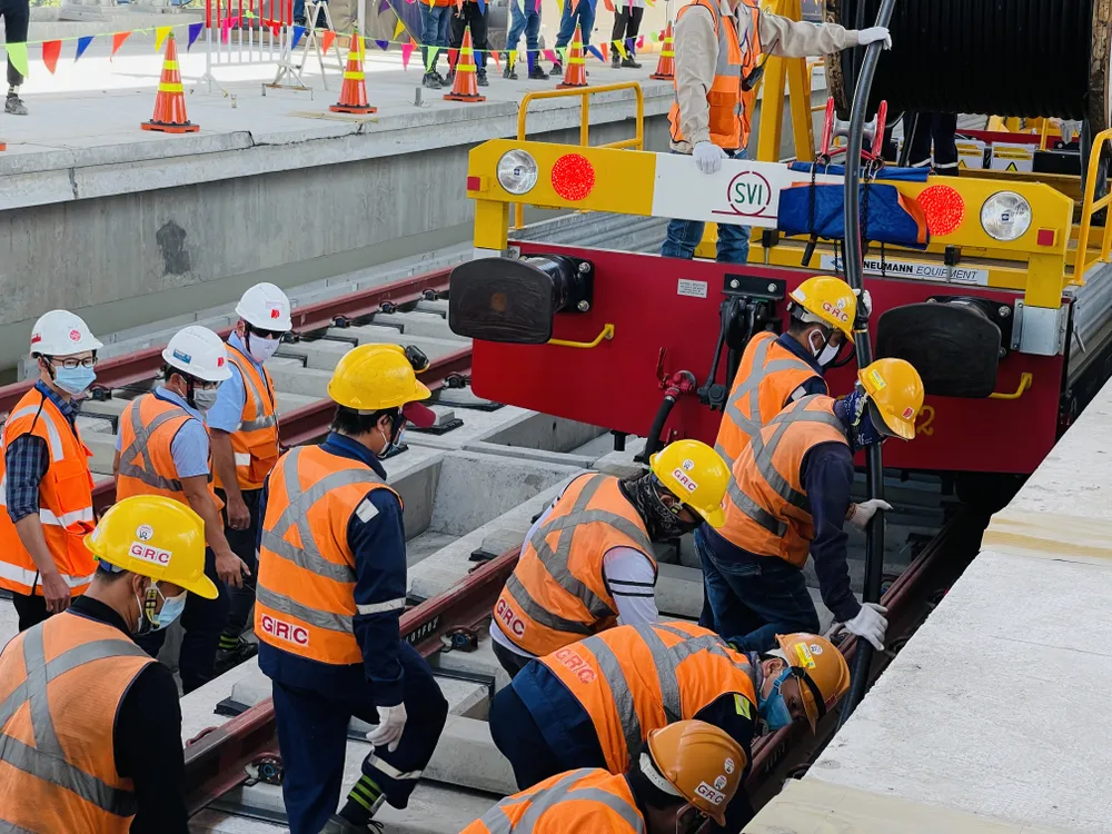 Ngay sau khi phát động buổi lễ, lãnh đạo MAUR cùng các nhà thầu đã lên đầu máy kéo cáp để tiến hành kéo cáp trên toàn hệ thống tuyến. Để làm được công đoạn này, phải cần sự phối hợp nhịp nhàng của 30 công nhân.