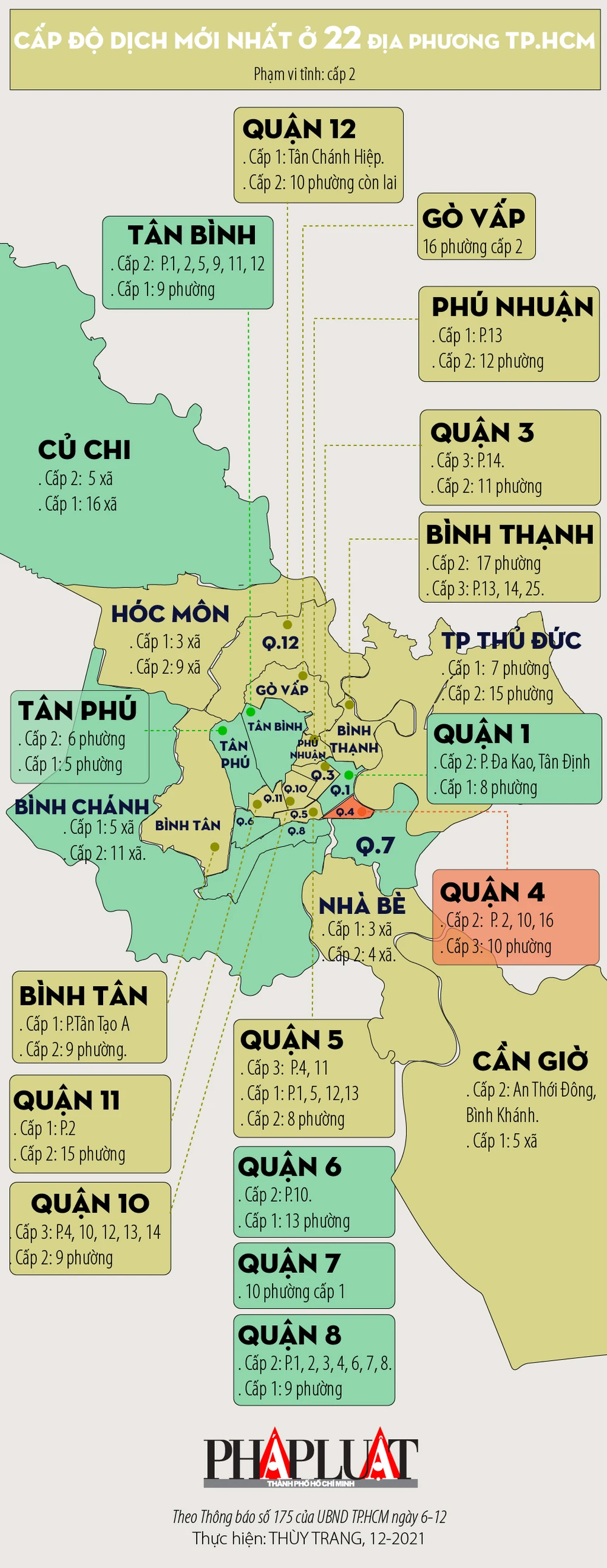 (PLO)- Một tuần trước khi học sinh lớp 1 TP.HCM có thể đi học trực tiếp ngày 13-12, cấp độ dịch tại 22 địa phương TP.HCM theo văn bản khẩn của UBND ngày 6-12 cụ thể như sau.