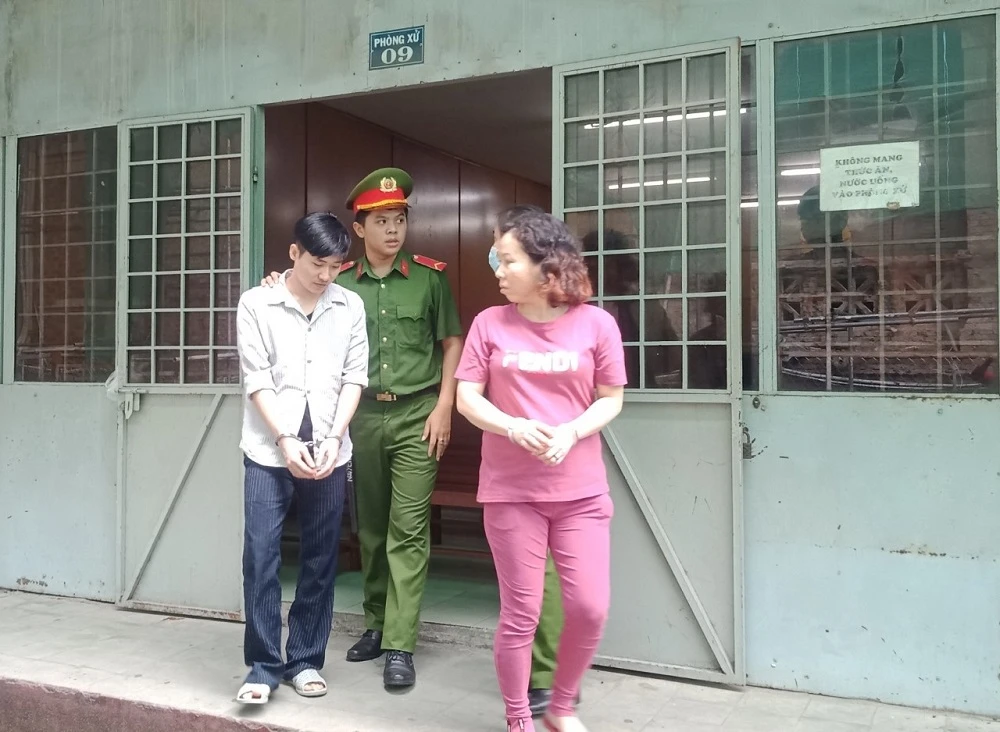 Bị cáo Nguyễn Hoàng Tâm và Âu Tuyết Ngọc sau phiên xét xử. Ảnh: NAM AN.