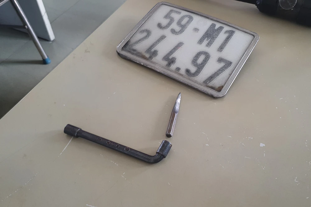 Cảnh sát phát hiện trong cốp xe Tuấn có một cây đoản nên phối hợp Công an phường Bình Trị Đông kiểm tra hành chính nơi ở và phát hiện thêm bình oxy màu xanh và một căn cước công dân của chị N.