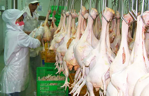 Dây chuyền giết mổ gà hiện đại thuộc chuỗi thực phẩm an toàn. Ảnh: TRẦN NGỌC