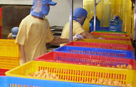 Nhân viên trong doanh nghiệp sản xuất bò viên, cá viên sẽ do ngành NN&PTNT cấp giấy xác nhận kiến thức VSATTP. Ảnh: TRẦN NGỌC