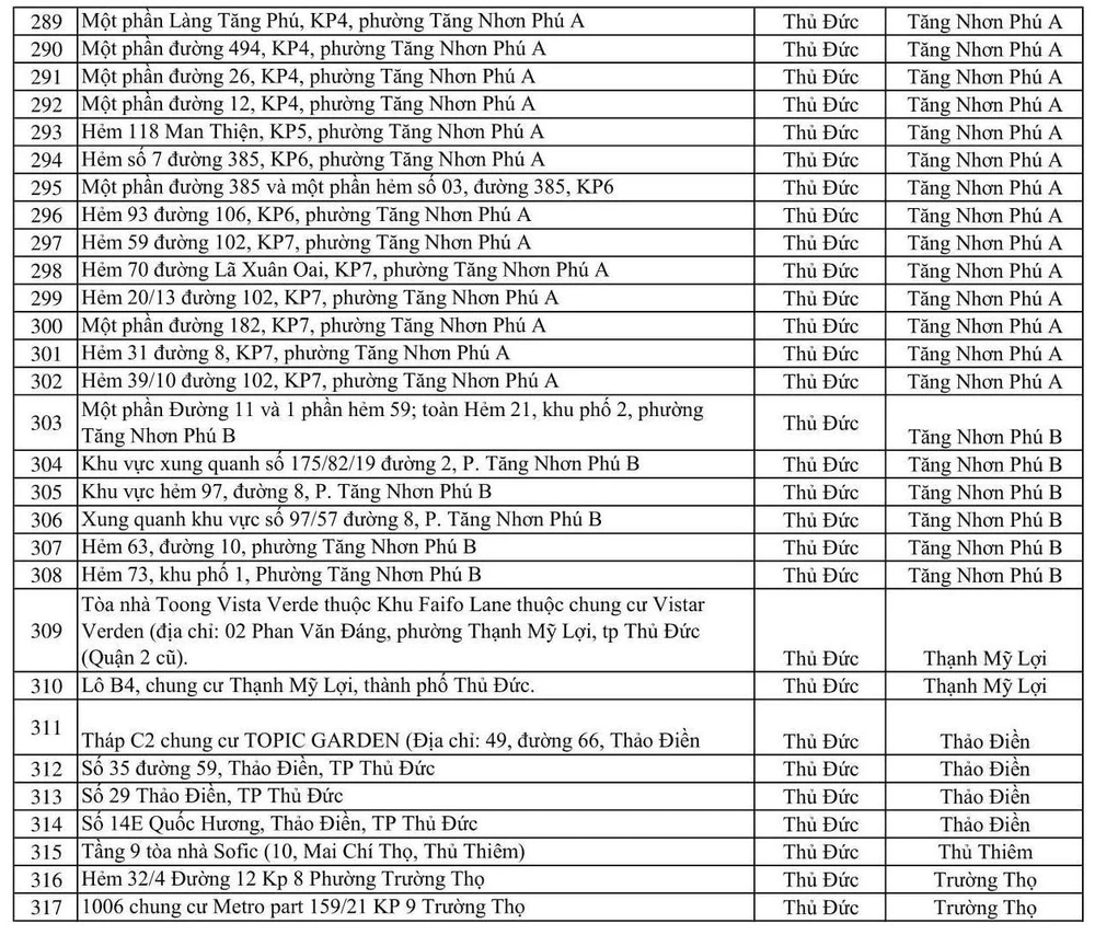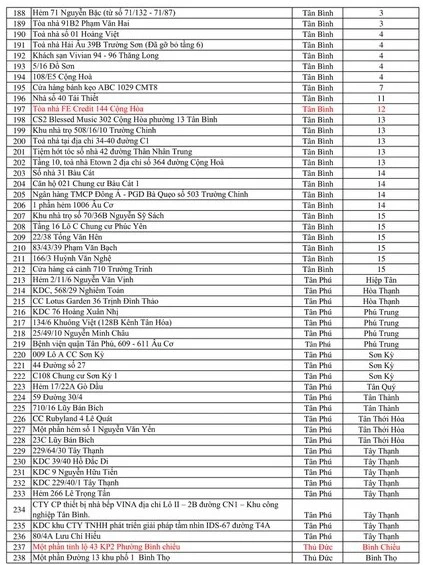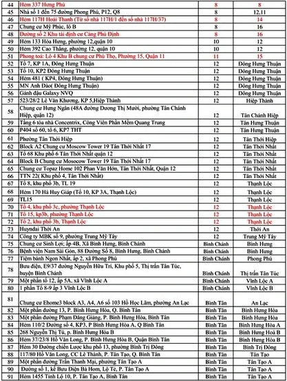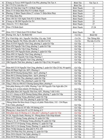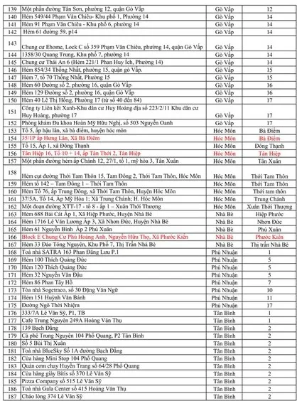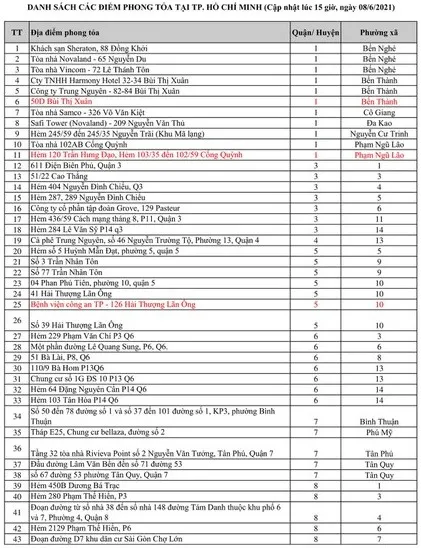 Tính đến 15 giờ ngày 8-6, TP.HCM có tổng cộng 317 điểm phong tỏa. Các điểm phong tỏa như sau: