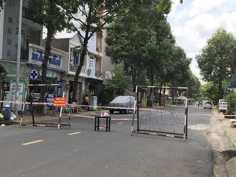 Một điểm phong tỏa trên đường D2, phường Tăng Nhơn Phú A, TP Thủ Đức. Ảnh: THANH TUYỀN