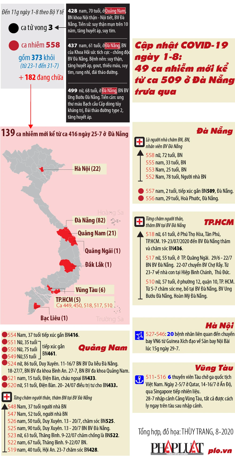 Cập nhật COVID-19 31-7: 50 ca nhiễm mới kể từ ca 459 trưa qua (PLO)- Đà Nẵng, Quảng Nam có 50 ca nhiễm COVID-19 mới kể từ ca 459 ở Hà Nội trưa qua.