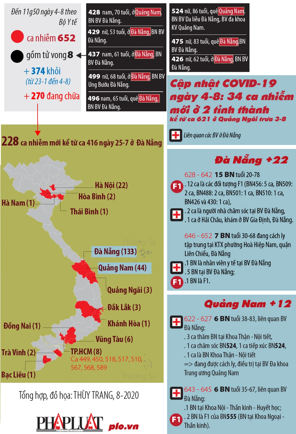 (PLO)- Từ trưa ngày 3-8 đến trưa 4-8, Việt Nam ghi nhận 34 ca nhiễm COVID-19 mới ở Đà Nẵng, Quảng Nam và ca tử vong thứ 7, 8 ở Đà Nẵng (BN 426, 496).