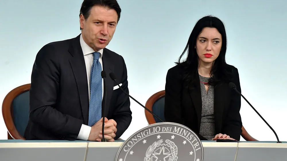 Thủ tướng Ý Giuseppe Conte và Bộ trưởng Giáo dục Công cộng Lucia Azzolina phát biểu trong cuộc họp báo tại thủ đô Rome ngày 4-3. Ảnh: AFP