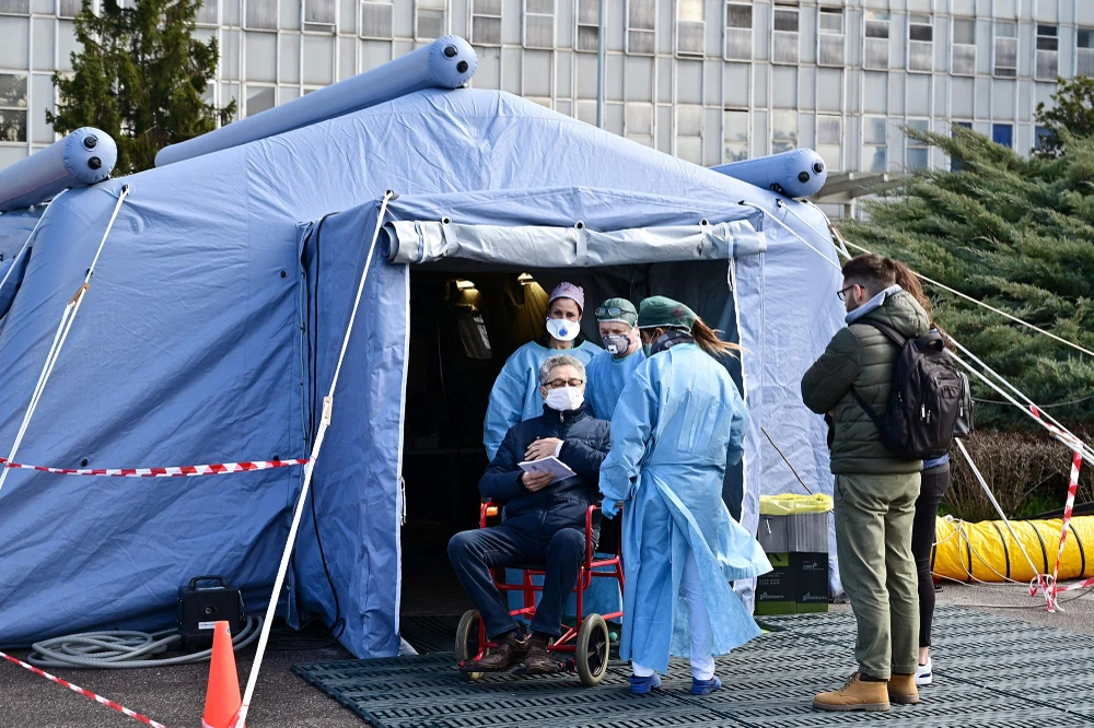 Nhân viên y tế thăm khám một bệnh nhân ở khu vực cách ly TP Milan (Ý) ngày 2-3. Ảnh: AFP