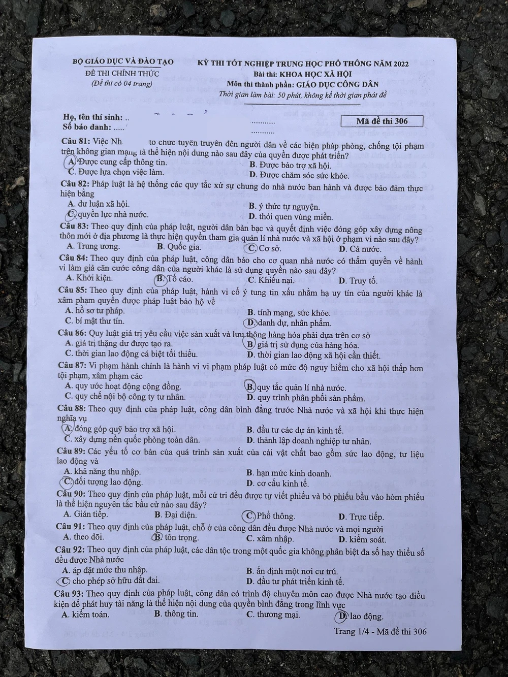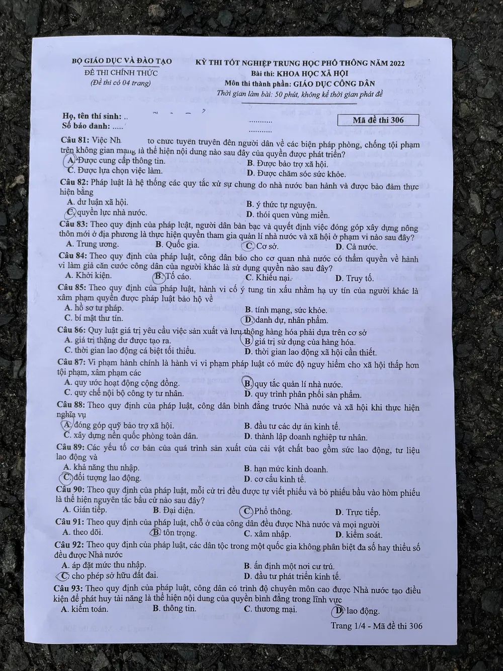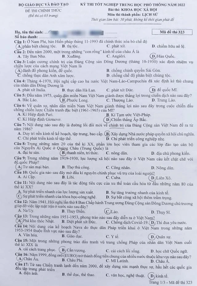 Cập nhật đề thi môn tổ hợp Khoa học xã hội