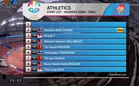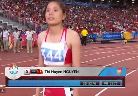 15 giờ 45: Điền kinh 400 mét nữ - Nguyễn Thị Huyền và Quách Thị Lan giành cả vàng và bạc.