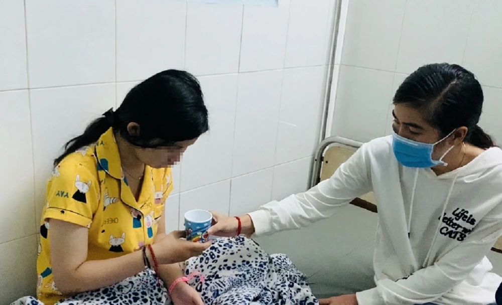 Nữ sinh NTNY (bìa trái) vẫn đang được điều trị tại Bệnh viện Nhi đồng 2, TP.HCM. Ảnh: HOÀNG LAN.