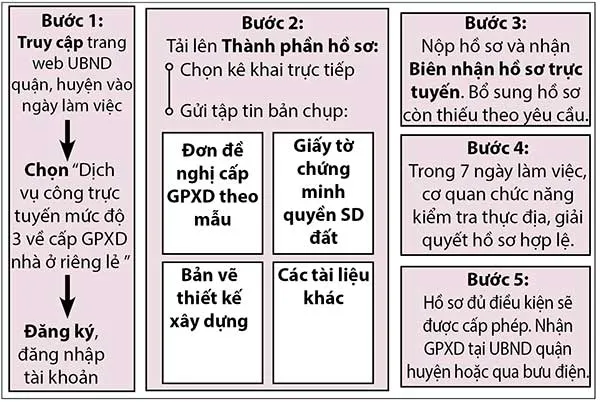 Quy trình cấp phép xây dựng trực tuyến. Đồ họa: THÙY TRANG