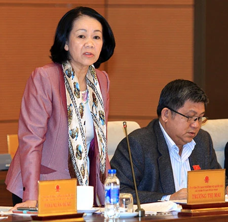 Chủ nhiệm Ủy ban Về các vấn đề xã hội của Quốc hội Trương Thị Mai cho rằng phải quy định cụ thể cấp phó ở mỗi cấp, tuy nhiên nên để một khung phù hợp để có đủ cấp phó thực hiện triển khai công việc. Ảnh: TTXVN