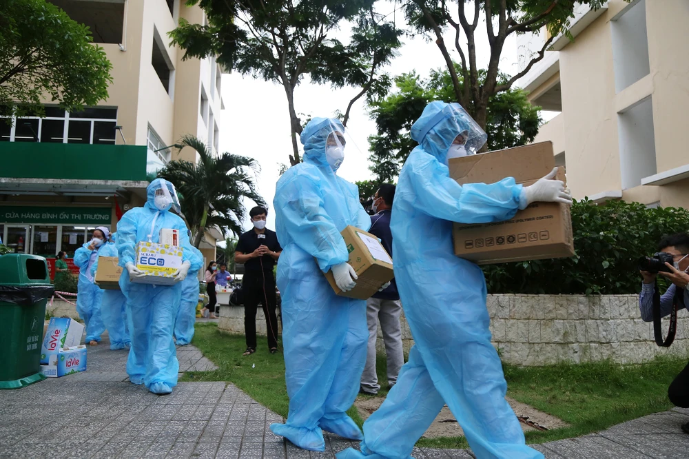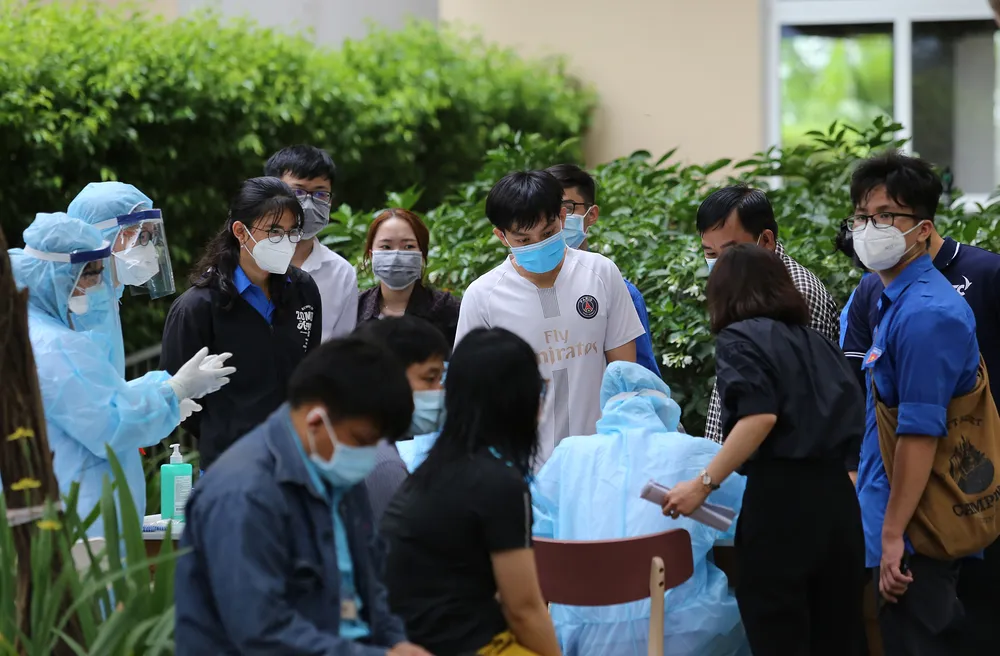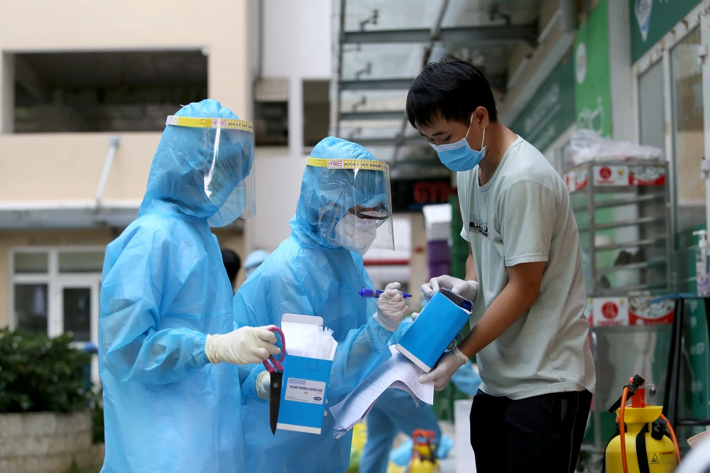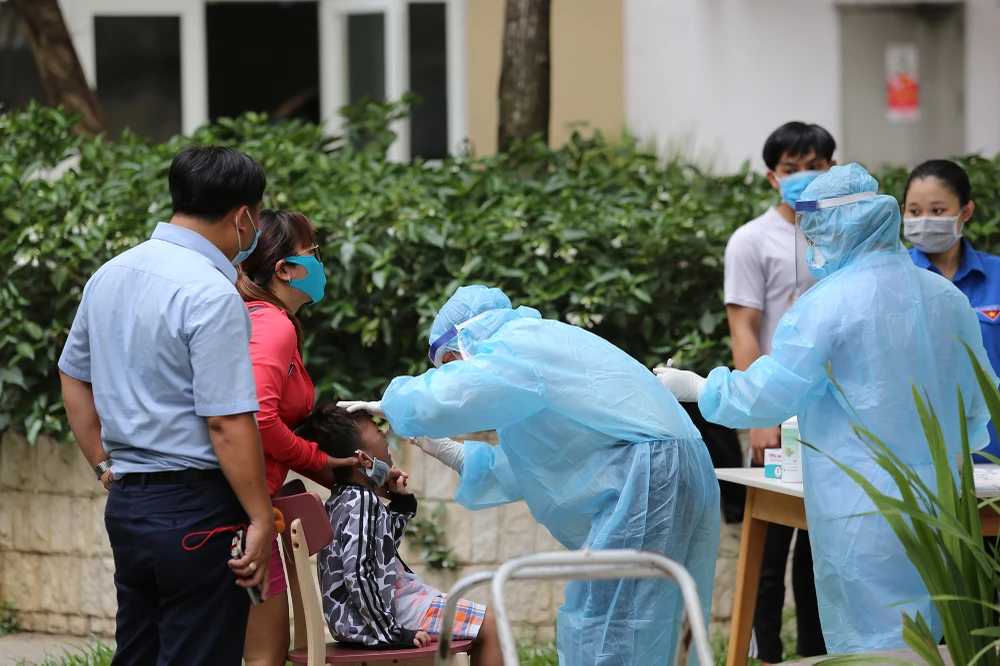 Chiều 18-5, khoảng chục nhân viên y tế của Bệnh viện Bình Thạnh được điều động đến để hỗ trợ lấy mẫu xét nghiệm cho cư dân chung cư.