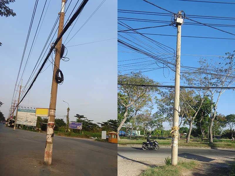 Trên đường Nguyễn Văn Linh (đoạn thuộc ấp 3, xã Bình Hưng, huyện Bình Chánh, TP.HCM) có cặp trụ điện sừng sững nằm giữa đường gây cản trở và nguy hiểm cho người dân trong khu vực cũng như người tham gia giao thông qua đây (ảnh 1 và 2).