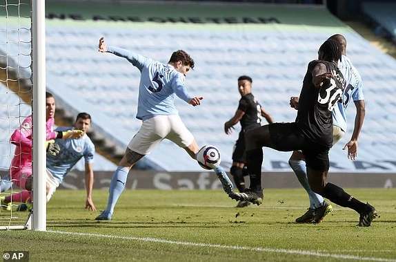 John Stones nhanh chân dứt điểm giúp Man. City ấn định chiến thắng 2-1. Ảnh: Reuters.