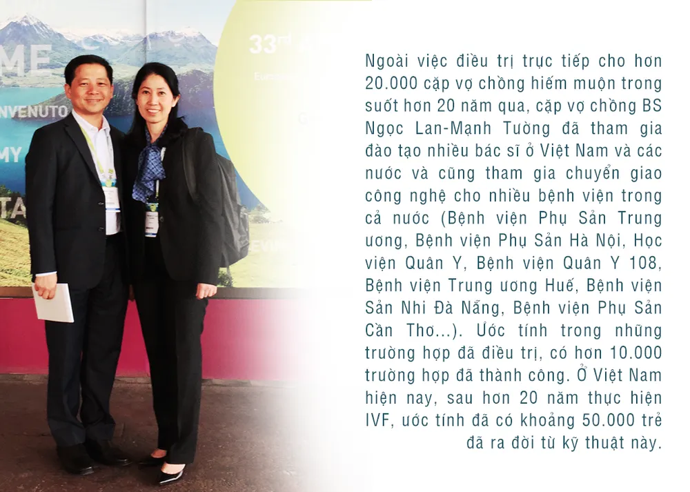 Từ những bước đầu chập chững, bác sĩ Ngọc Lan và Mạnh Tường đã cùng nhau thực hiện những nghiên cứu táo bạo đưa kỹ thuật thụ tinh trong ống nghiệm của Việt Nam ghi dấu ấn trên bản đồ y học thế giới.