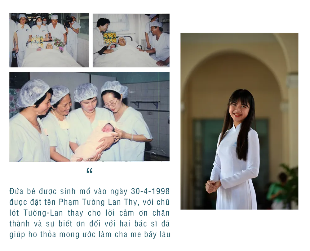 Đứa bé được sinh mổ vào ngày 30-4-1998 cùng với hai bé Lưu Tuyết Trân và Mai Quốc Bảo sau này được đặt tên Phạm Tường Lan Thy, với chữ lót Tường-Lan thay cho lời cảm ơn chân thành và sự biết ơn đối với hai bác sĩ đã giúp họ thỏa mong ước làm cha mẹ bấy lâu, dù lúc này hai người chưa thành vợ chồng. Đứa bé gái nay đã là cô gái 21 tuổi giỏi giắn được biết đến là “hot girl ống nghiệm” với thành tích học tập nổi bật và đang đi du học ở Nhật như một phần thưởng đối với ekip lúc bấy giờ.