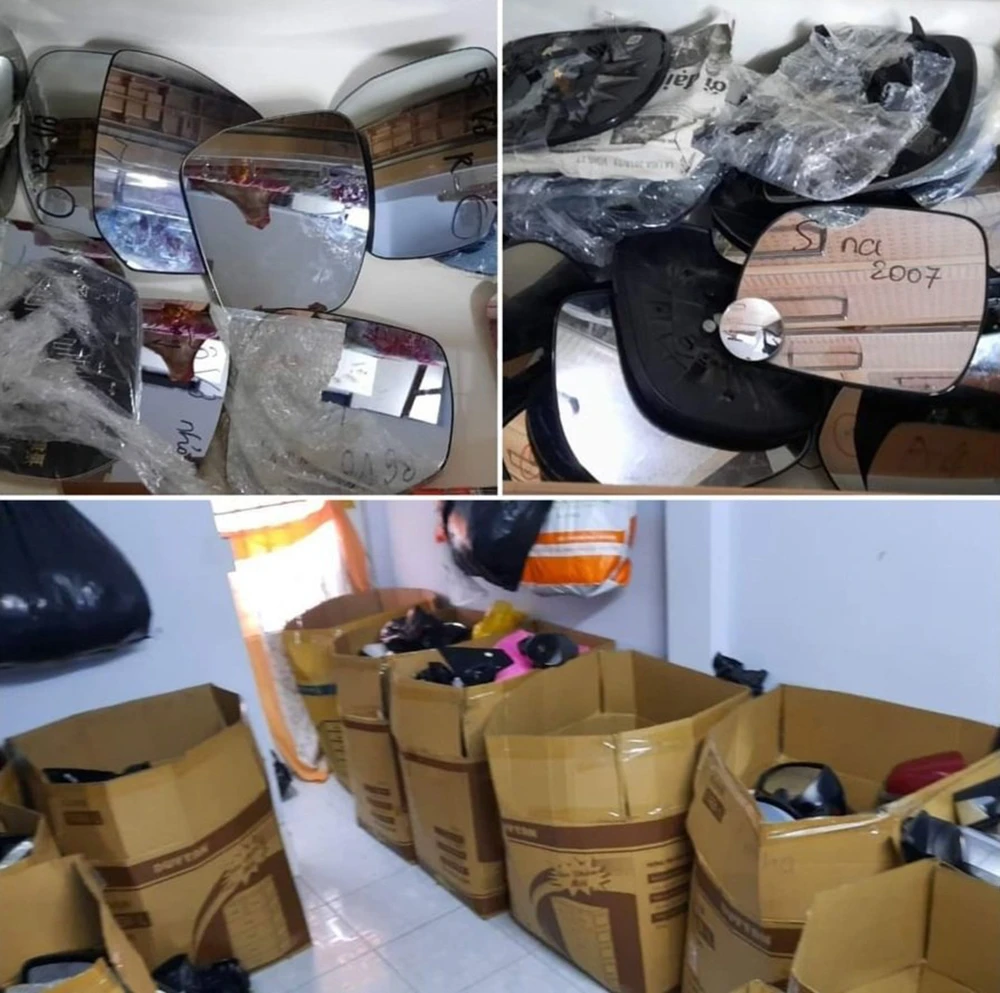 Công an cũng thu giữ 1.110 gương chiếu hậu ô tô các loại tại nhà ở tỉnh Bến Tre mà hai người mua lại của những kẻ trộm cắp phụ tùng ô tô trên địa bàn TP.HCM.