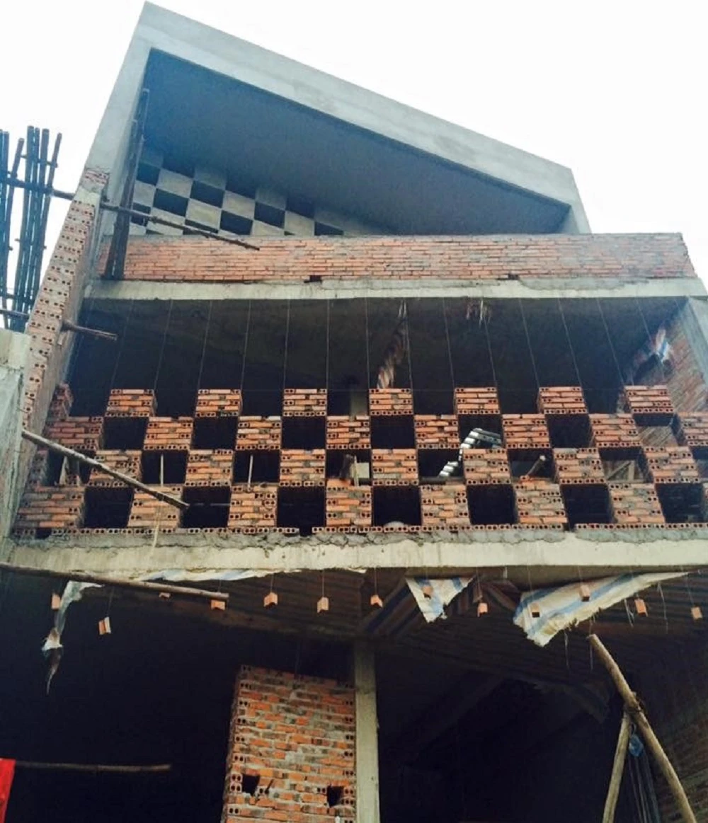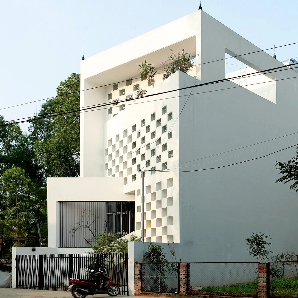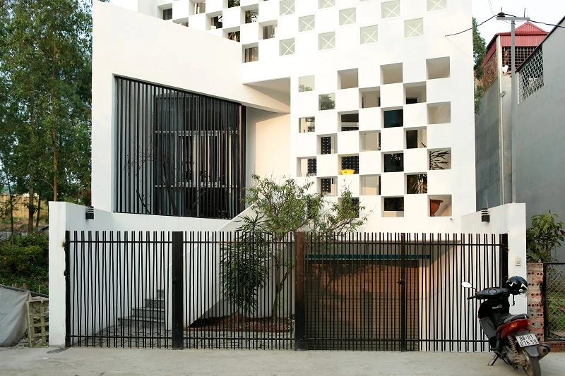 Mặt tiền ngôi nhà cũng được thiết kế với từng ô vuông caro tạo nét khác biệt.