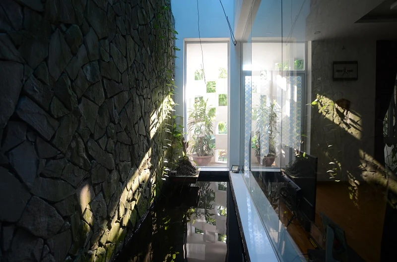 Đây là khu vực đối lưu của ngôi nhà. Một giải pháp tránh nóng, tránh nắng của KTS bên trong ngôi nhà.