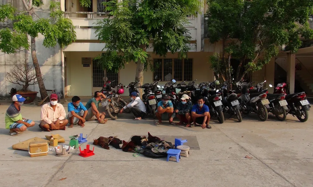 Theo công an, do tình hình dịch bệnh COVID-19 diễn biến phức tạp, các Casino trên đất Campuchia đã đóng cửa nên những người này lén lút về địa phương tổ chức đá gà và lắc tài xỉu ăn thua bằng tiền.