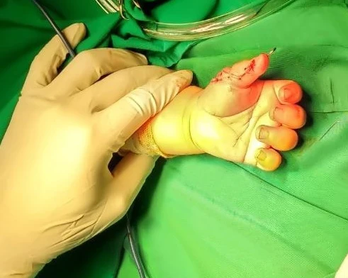Các bác sĩ đã cắt bỏ ngón cái mọc "vô duyên". Ảnh: LÊ PHỤNG