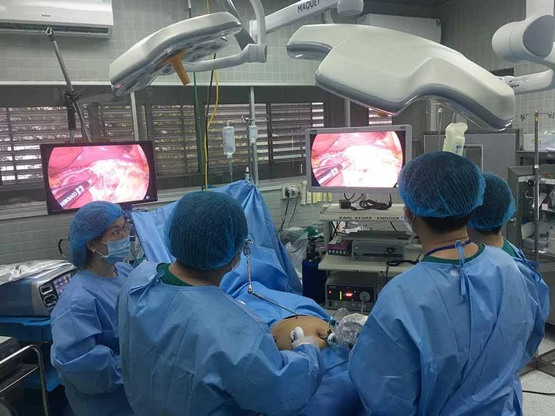 Hình ảnh ca phẫu thuật cắt dạ dày giảm béo cho chị T. Ảnh: HL