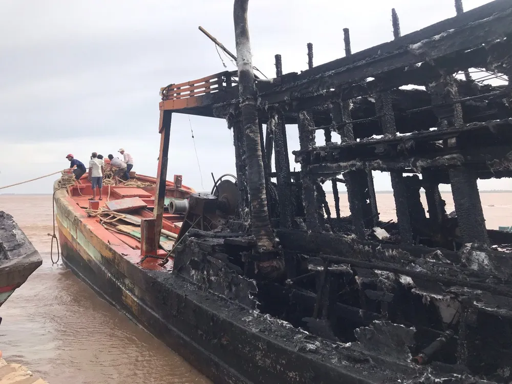 Sau gần 2 giờ cứu hỏa trên sông, ngọn lửa được dập tắt hoàn toàn. Hải đội Biên phòng 2 đã lai dắt hai phương tiện vào bờ. Tàu cá BT 93339 TS bị cháy nặng nhất.