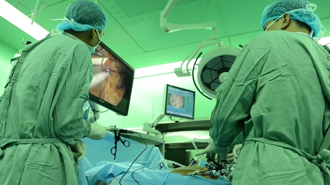 Một ca phẫu thuật nội soi cắt gan được thực hiện tại BV Đại học Y Dược TP.HCM. Ảnh: Thanh Niên