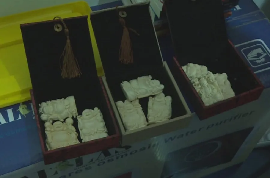 Qua kiểm đếm, có gần 700 sản phẩm trang sức được làm từ ngà voi như: vòng, nhẫn, chuỗi hạt, tượng... Ngoài ra, lực lượng Công an còn phát hiện trong tủ lạnh nhà Tùng có cất dấu 90 lọ mật gấu.